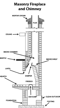 Masonry fireplace flues must be swept from the bottom so the throat of the chimney can be swept removing the build up of creosote. The damper must also be removed so we can access the smoke shelf and clear off all the debris that has accumulated on it.
